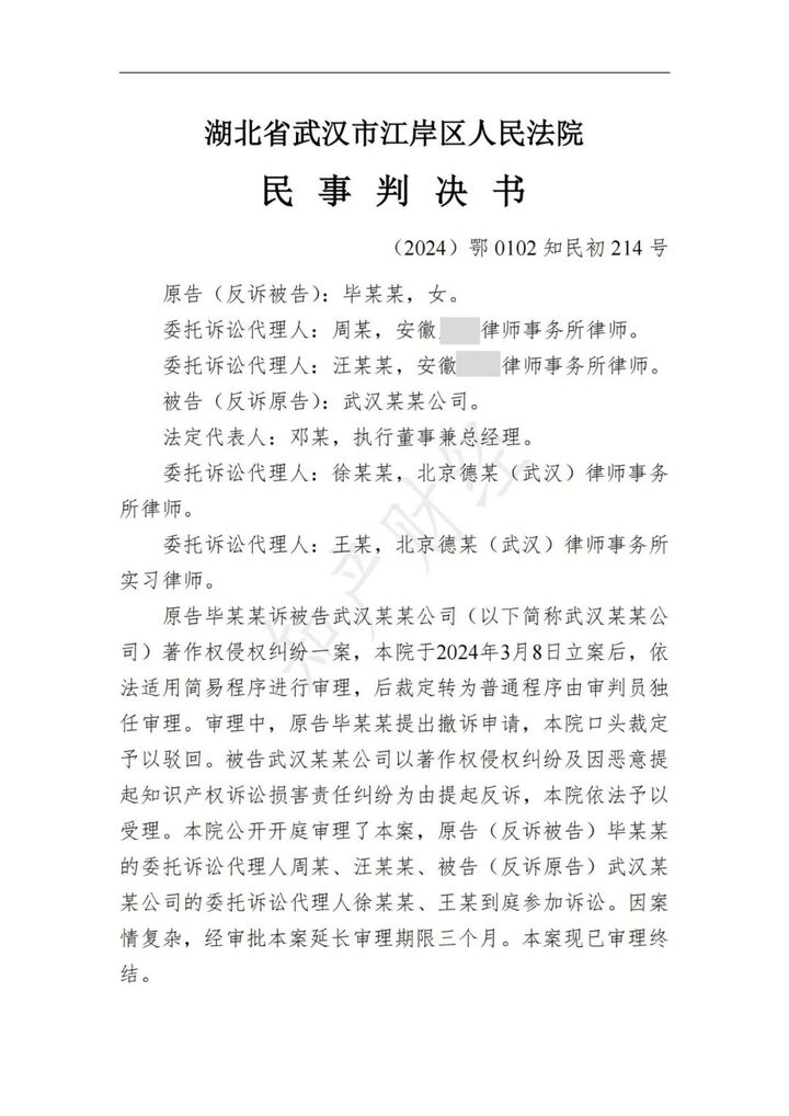 湖北省武汉市江岸区人民法院(2024)鄂0102知民初214号