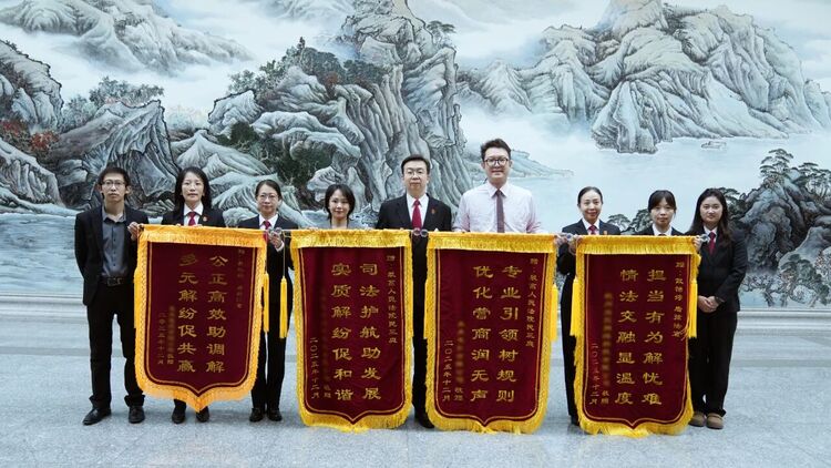 他们此行的目的很简单——送锦旗。为了向挽救企业于水火之中、劳心劳力昼夜奋战的法官们表示感谢,是他们一揽子调解了包含潜在的4000余起涉央视著作权纠纷,标的额达数千万元。