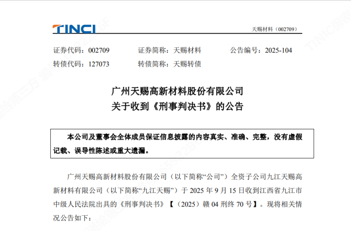 知产财经获悉,近日,广州天赐高新材料股份有限公司(简称“天赐材料”)发布公告,披露其全资子公司九江天赐高新材料有限公司(简称“九江天赐”)诉李某、郑某某侵犯商业秘密罪一案已收到江西省九江市中级人民法院的终审判决结果。
