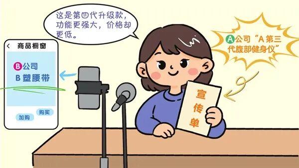 2023年4月,A公司发现,C公司的主播在介绍B公司的“B塑腰带”时,声称“这是第四代升级款,功能更强大,价格却更低”。直播过程中,主播手中拿着A公司“A第三代腹部健身仪”的宣传单,而橱窗展示的却是B公司商品的链接。A公司认为,C公司主播曾为其直播推广过“A第三代腹部健身仪”,主播此番行为极易让消费者产生误解,认为B公司的“B塑腰带”是A公司产品的升级或改进版本。