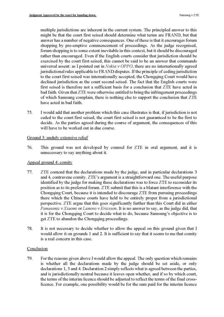 由三位上诉法官组成的合议庭一致推翻了这一判决。主审法官Arnold 在判决书中指出:“除非对某一法院存在合法且有证据支持的反对理由,否则SEP持有人试图迫使实施者接受其偏好的法院来确定FRAND条款,并不构成恶意。”