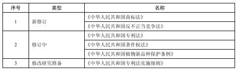 推进《中华人民共和国专利法修正案(草案)》的审议工作, 推进《中华人民共和国专利法实施细则》修改研究准备工作。